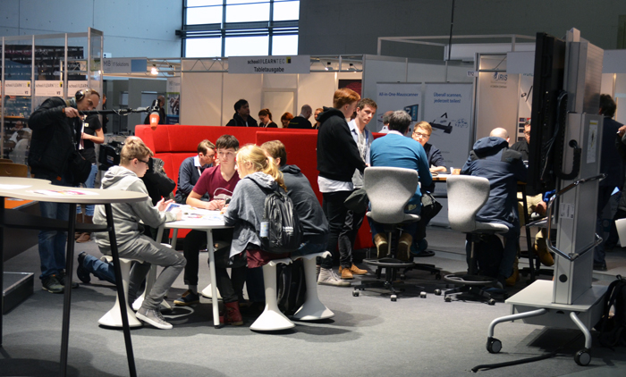 LEARNTEC, Jürgen Luga (Redaktionsbüro Education) und der Firma VS Vereinigte Spezialmöbelfabriken, mit deren Möbel auch in diesem Jahr der Bereich gestaltet wird wurde das innovative Präsentationsformat, das auf Flexibilität und Improvisation setzt, weiterentwickelt und um einen Makerspace erweitert. Die Flexibilität der Präsentationsarrangements und der Möblierung schafft die Voraussetzung, mit unterschiedlichen didaktische Settings zu arbeiten.