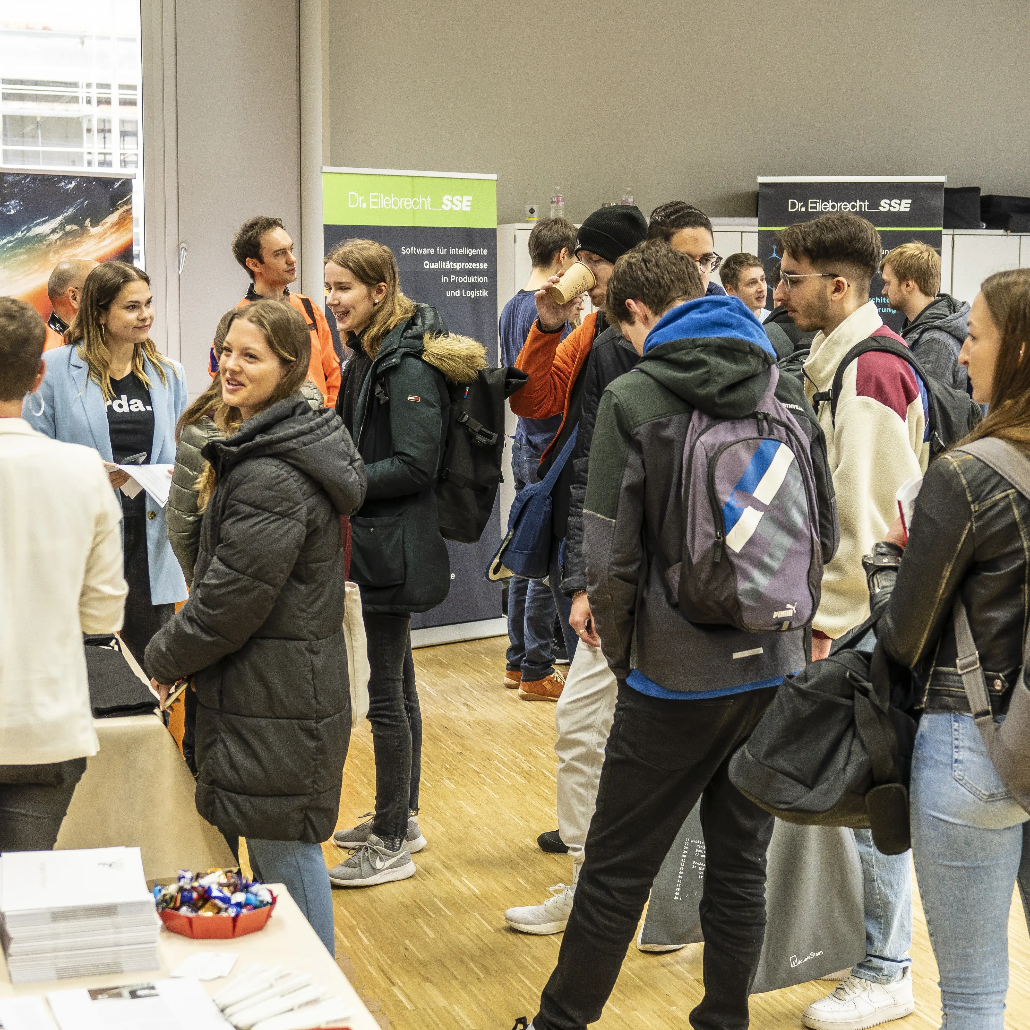 Am 28. Oktober findet ihr von 10 - 15 Uhr spannende Unternehmen im Foyer N8. Hier können Studierenden direkt am Stand mit den Unternehmensvertreterinnen und -vertretern in Kontakt treten, sich informieren, netzwerken oder sich direkt für ausgeschriebene Stellen empfehlen.