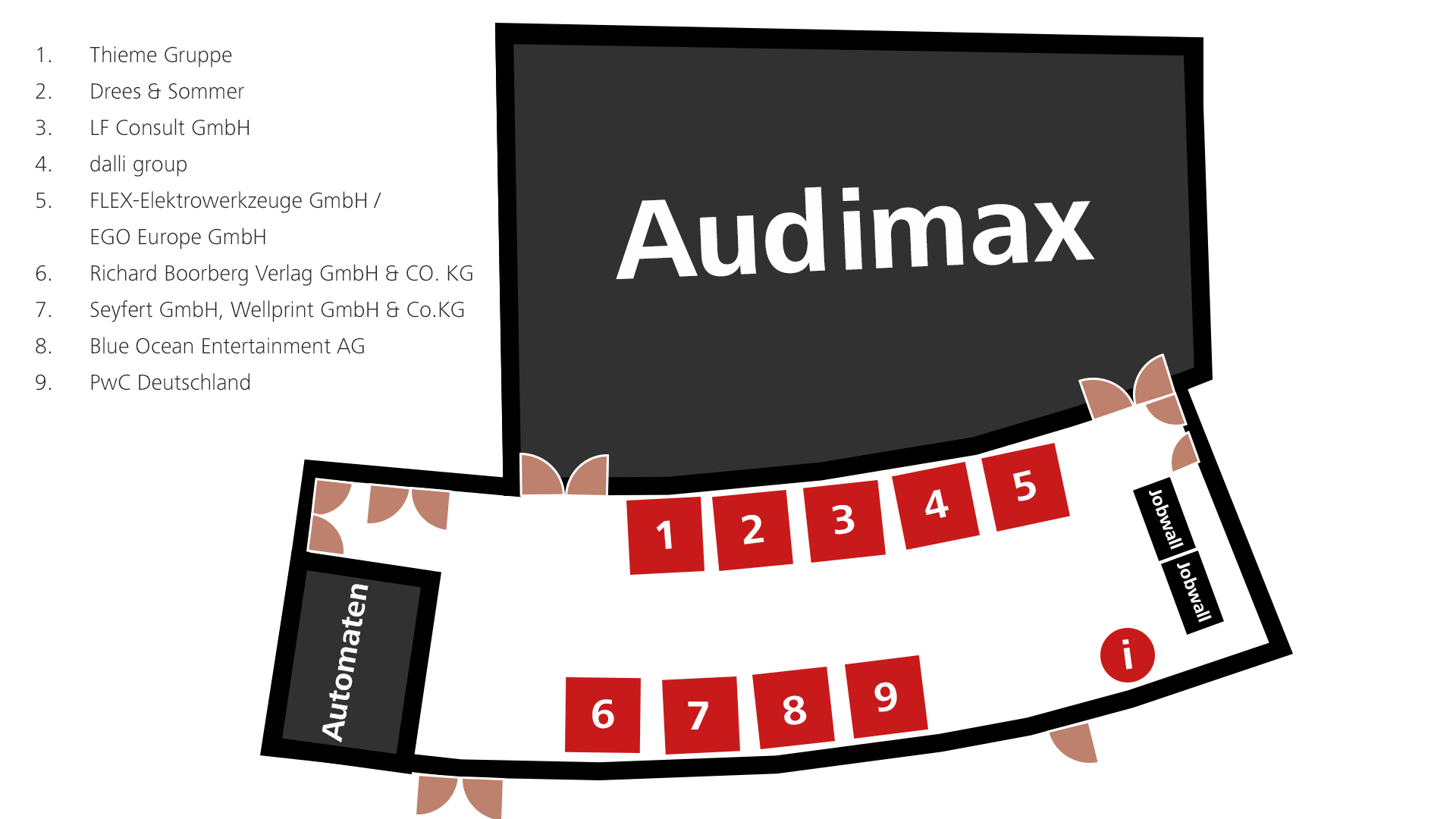 Einen Überblick wo die Unternehmen im Foyer des Gebäude N8 zu finden sind gibt der KarriereLobby Standplan.