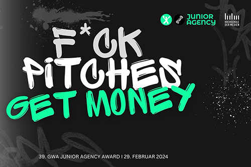 Unter dem provokanten Motto "F*ck Pitches - get money" wetteifern ab 10 Uhr insgesamt acht Teams um die begehrten Junior-Trophäen in Gold, Silber und Bronze. Dafür präsentieren sie ihre Ergebnisse in einem 25-minütigen Pitch vor einer ausgewählten Fachjury. Zudem werden der sogenannte „Making-Off-Preis" und ein Publikumspreis verliehen.