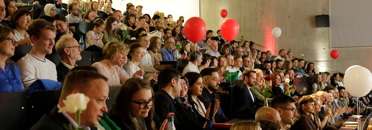 Sollten Sie Ihren Abschluss im WiSe 25/26 machen und wurden nicht eingeladen, melden Sie sich bitte frühzeitig bei der für Ihren Studiengang zuständigen Ansprechperson der Prüfungsverwaltung. Nur so können wir Ihnen noch eine Teilnahme an der Feier ermöglichen