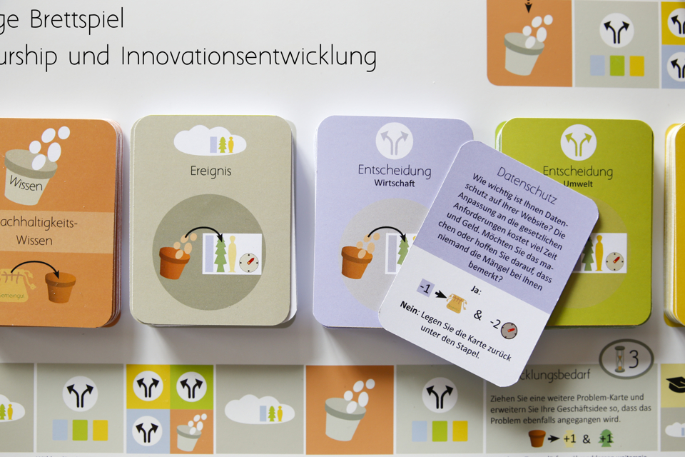 Im Spiel werden auf drängende Fragen unserer Zeit kreative Antworten entwickelt, Wissen zu Nachhaltigkeit und Entrepreneurship vermittelt und sich mit Spaß diesen anspruchsvollen Themen gewidmet.