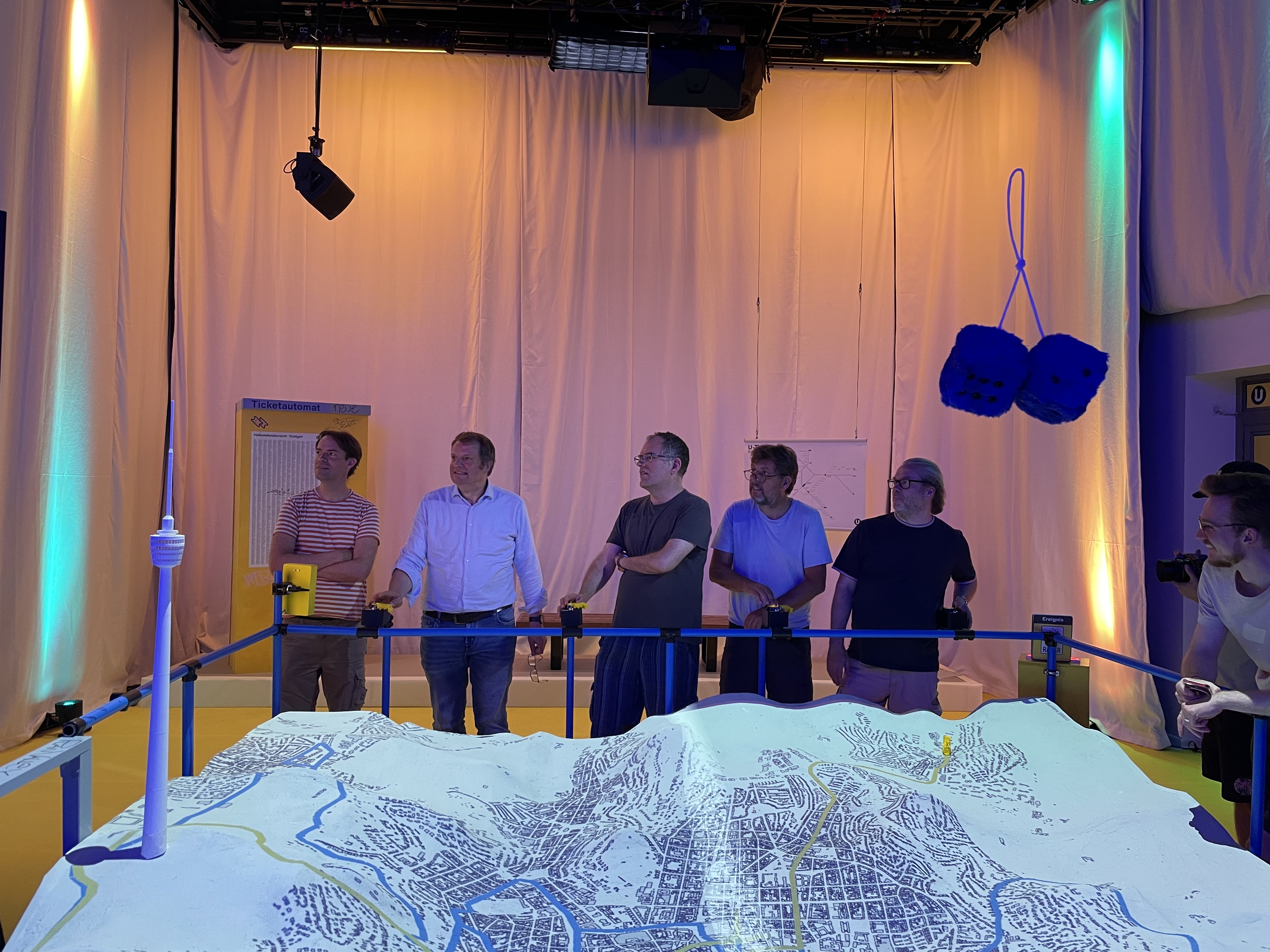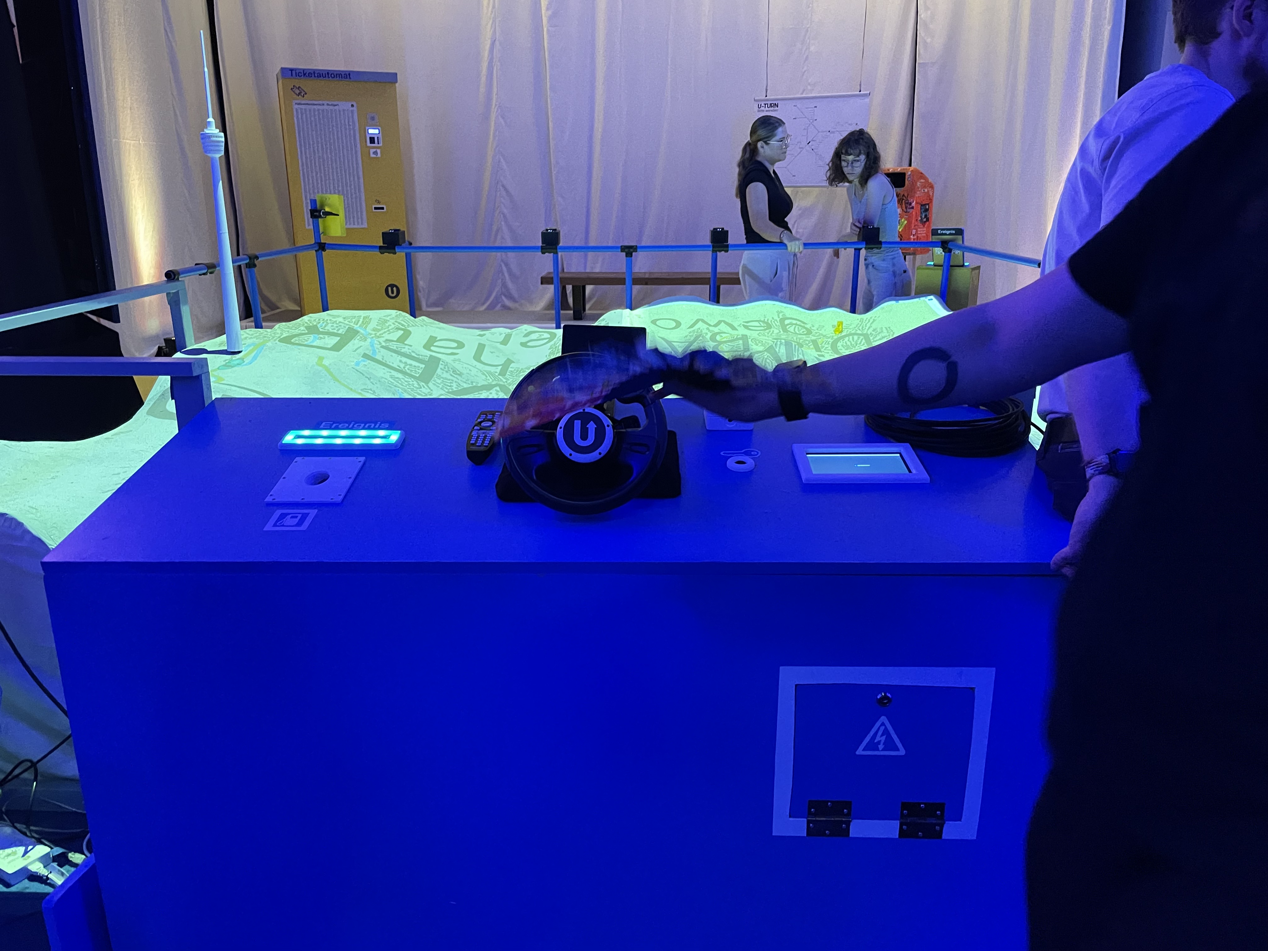 Das Auto tritt gegen die Bahn an. Wir inszenieren ein interaktives Wettrennen im Raum. Zwei Gruppen bewegen sich über die Spielfläche. Es gibt Hinternisse, Challenges, Aufgaben und die Möglichkeit das andere Team zu behindern. Spannung!