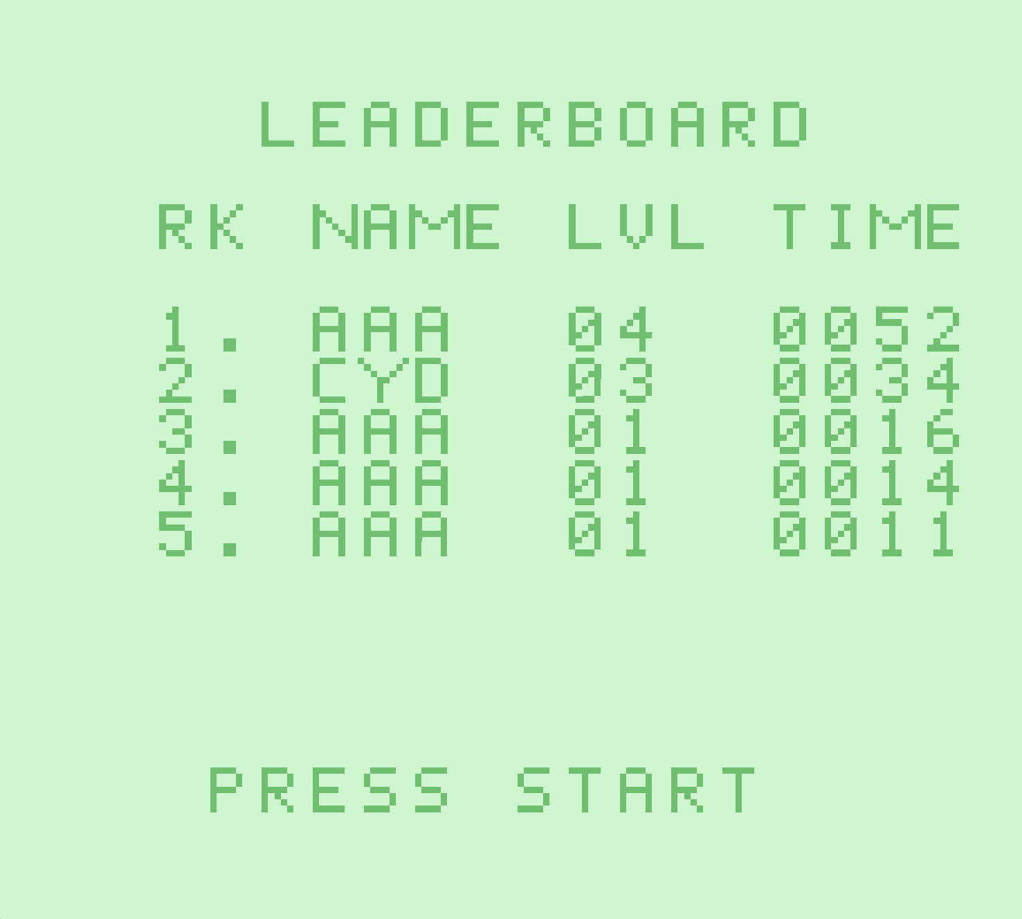 Eine Runde endet mit dem Tod des Spielers und einem Eintrag in das Leaderboard mit erreichtem Level und gespielter Zeit.