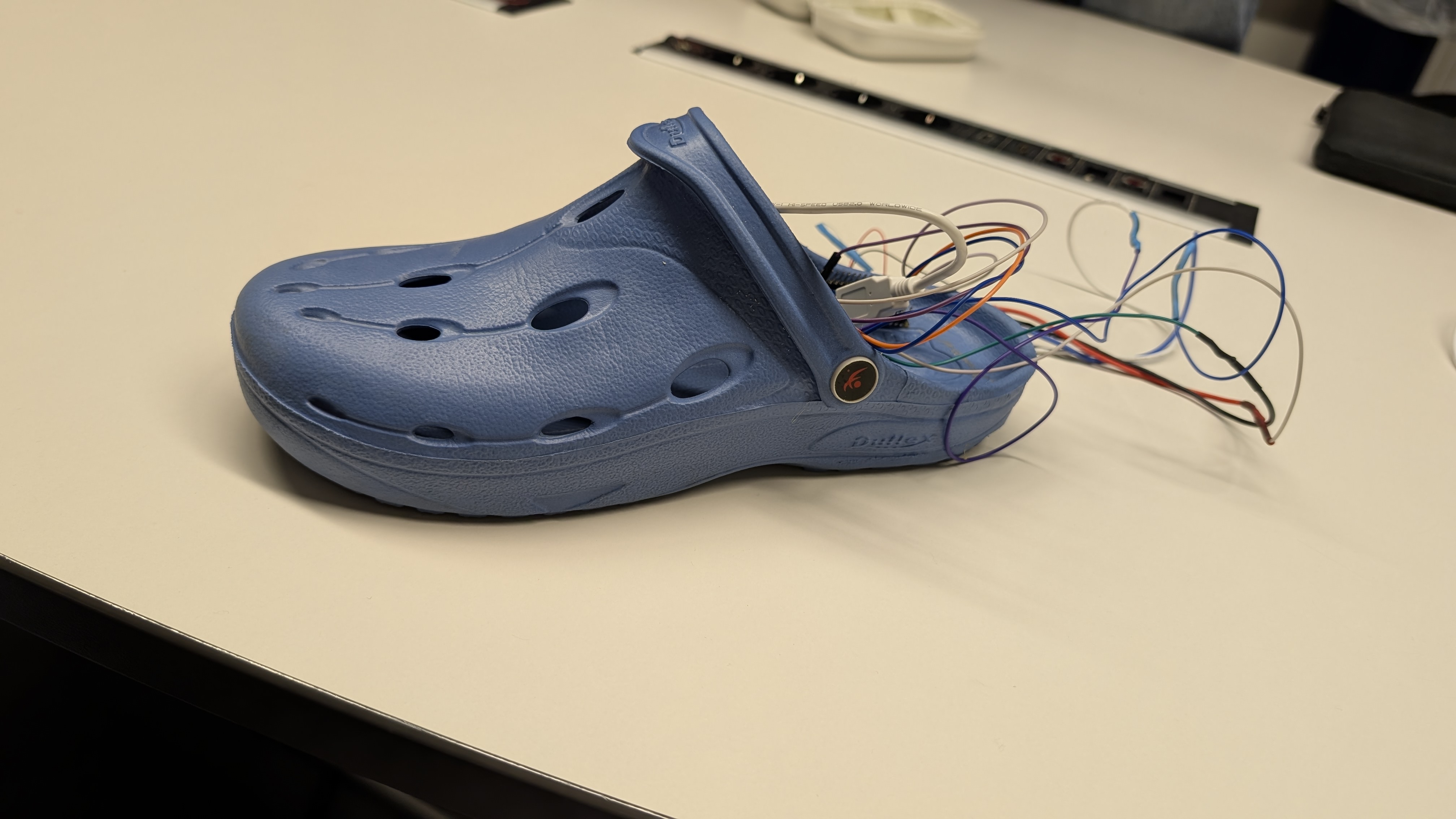 Vor Ort kann das Produkt außerdem direkt getestet werden: Interessierte können die Orthosohle anprobieren und live erleben, wie sich die Messung und das Feedback im Alltag anfühlen. Die Website bzw. die Smartphone-Oberfläche lässt sich dabei auf dem eigenen Handy öffnen, sodass man die Bedienung genau so sieht, wie man sie später auch selbst nutzen würde. Auf Wunsch kann man die Orthosohle direkt mit dem eigenen Smartphone verbinden und die Echtzeit-Datenübertragung selbst ausprobieren. Damit der Test möglichst realistisch ist, stehen außerdem Krücken bereit – so kann das Gehen unter typischen Reha-Bedingungen simuliert werden und die Orthosohle lässt sich unter praxisnahen Bedingungen optimal ausprobieren.