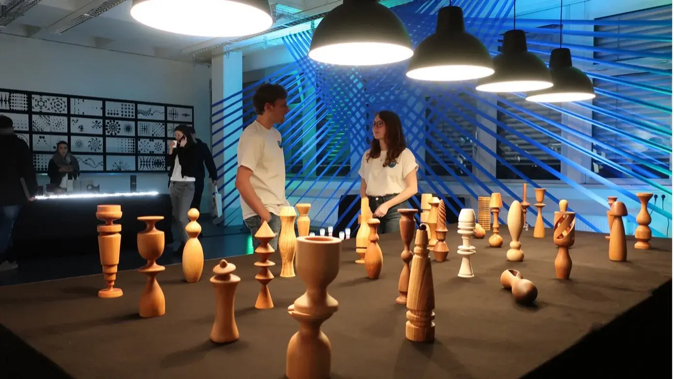 In der Lehrveranstaltung dreidimensionale Gestaltungsgrundlagen erarbeiteten die Studierenden des ersten Semesters Volumenkörper aus Holz unter Berücksichtigung von Proportion, Spannung, Rhythmus, Kontrast und Harmonie.