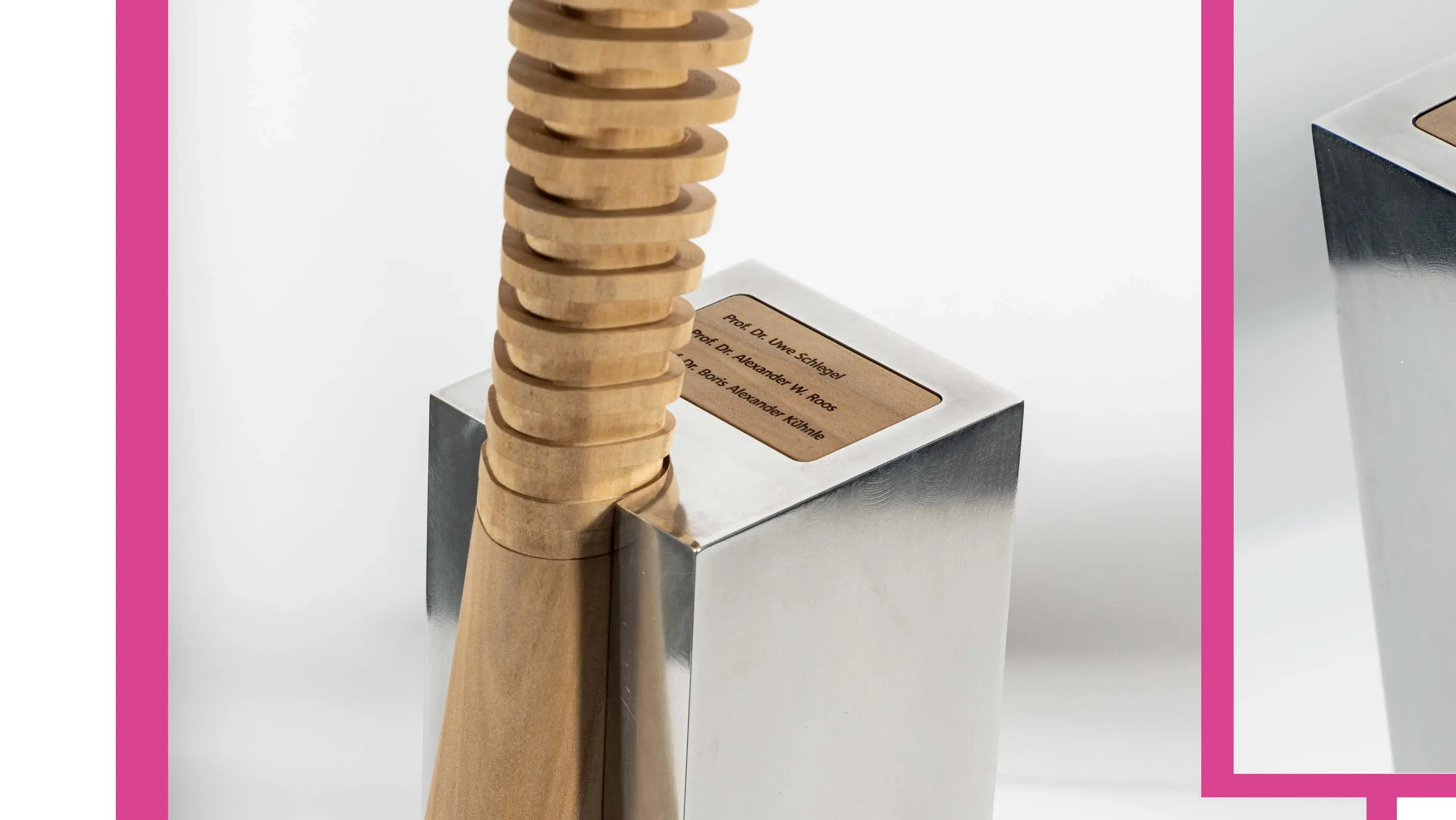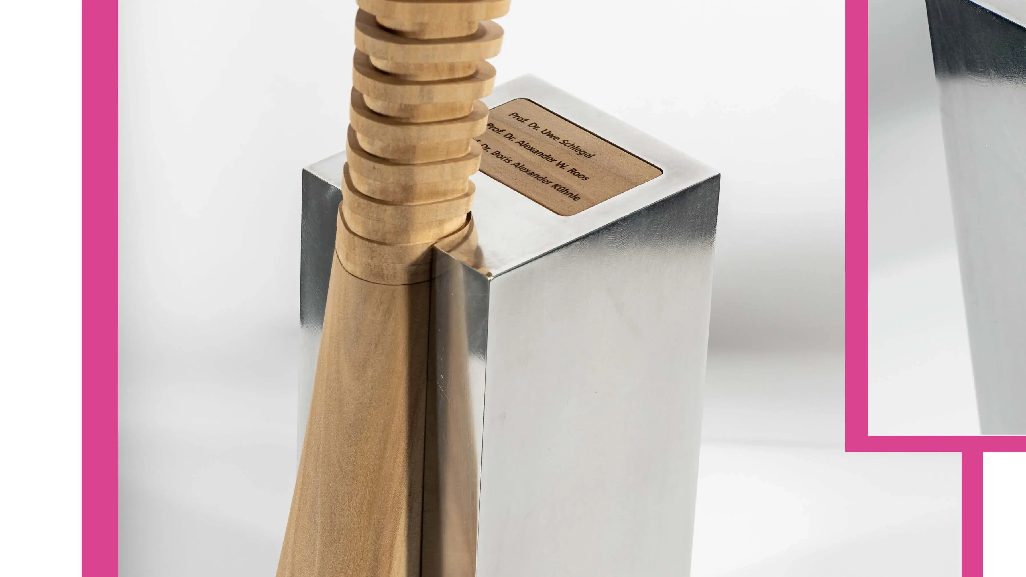 Der Staffelstab soll symbolisch die Amtsübergabe verkörpern. Gefertigt wurde er aus Apfelholz in unserer neuen CNC-Maschine. Die organisch verdrehte Form steht für Bewegung, Wandel und Wachstum.