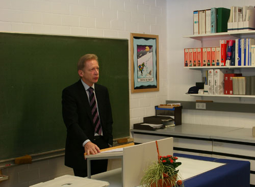 Volkmar Assman unterstrich, dass sein Unternehmen die Ausbildung des Branchennachwuchses ebenfalls gerne unterstütze. Die Firmen Wohlenberg und Baumann wären sehr gerne bereit gewesen, der HdM die modernen Maschinen zur Verfügung zu stellen, weil die Ausbildung einen wichtigen Stellenwert in beiden Unternehmen besitze. Da Baumann der Technologieführer im Bereich automatisches Schütteln sei, wäre es eine Selbstverständlichkeit, der HdM auch eine Schüttelmaschine modernster Bauart zu überlassen, so Assmann. Er wünschte den Studierenden erfolgreiches Schneiden und Schütteln mit den neuen Maschinen.