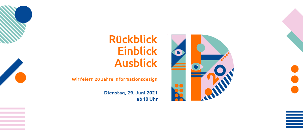 Anwendungsorientierte Forschungsprojekte stehen im Mittelpunkt der Interviews mit Prof. Dr. Judith Papadopoulos und Prof. Dr. Michael Burmester. Sandra Schoenrade (Bosch), Axel Platz (Siemens) und Carolin Schmitt (Phoenix Design) beleuchten die Trendthemen der Zukunft im Informationsdesign. Nach der offiziellen Verabschiedung von Prof. Dr. Roland Mangold in den Ruhestand besteht die Möglichkeit, das Jubiläum bei einem virtuellen "ID-Get-togehter" ausklingen zu lassen. Die Moderation der Veranstaltung übernimmt Informationsdesign-Studentin Valentina Herzog.