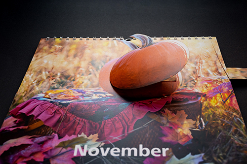 Jeder Studierende des Kurses hat die Vorder- und Rückseite eines Monatsblattes gestaltet. Sehenswürdigkeiten oder andere Besonderheiten aus dem Herkunftsland der Studentin oder des Studenten sind auf der Vorderseite abgebildet. Auf der Rückseite finden sich die passenden Erklärungen zu dem Motiv oder weitere Informationen zu dem entsprechenden Land. Bei der Gestaltung der Seiten haben die Studierenden ihre Kreativität und ihr Wissen im Bereich der Drucktechnologien unter Beweis gestellt: Für den Monat Januar wurde Schnee durch Siebdruck mit weiß glänzenden Partikeln in der Tinte dargestellt. Im Monat März ist ein Flugzeug zu sehen, dem durch Hochglanzlack ein besonderer Effekt verliehen wurde. Im Mai lässt sich das Fell eines Gorillas erfühlen und reibt man auf der Rückseite des Monats August an einer Illustration von Kaffeebohnen, verteilt sich der Geruch von Kaffee. Die Abbildung eines Kürbis im Monat November wirkt durch den Pop-up Effekt real.