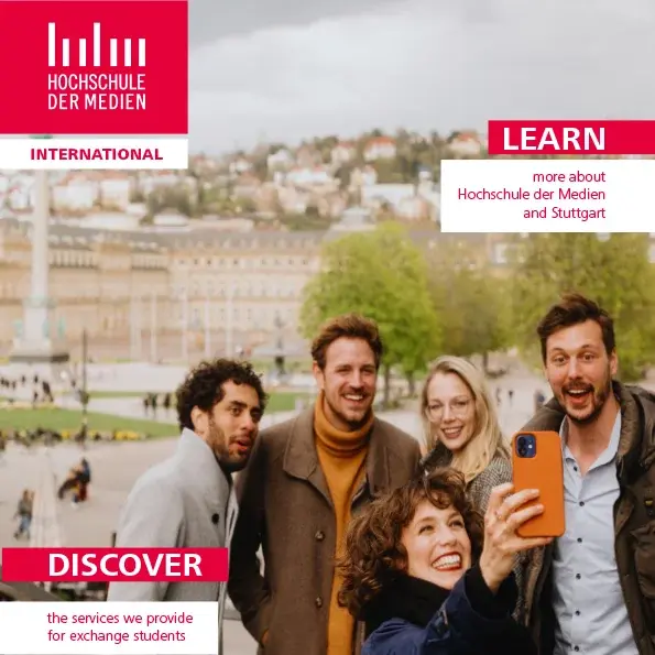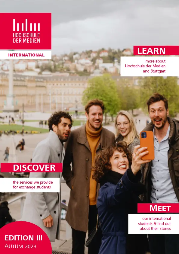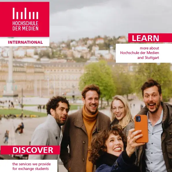 Exchange students starting their studies at the HdM can look forward to an exciting and enriching time. From initial orientation to everyday study life, they will receive comprehensive support to make their start in Stuttgart as smooth as possible. In addition to the academic experience, HdM also offers support with practical issues such as accommodation and health insurance, so that international students can concentrate fully on their studies.